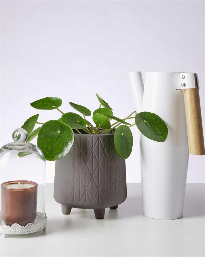 Native to southern China, this the “Money Plant” features distinctively circular leaves. It has long been popular in Scandinavian homes, where it complements a clean & minimalist aesthetic. Featuring a unique and contemporary pot with feet (120mm diameter).