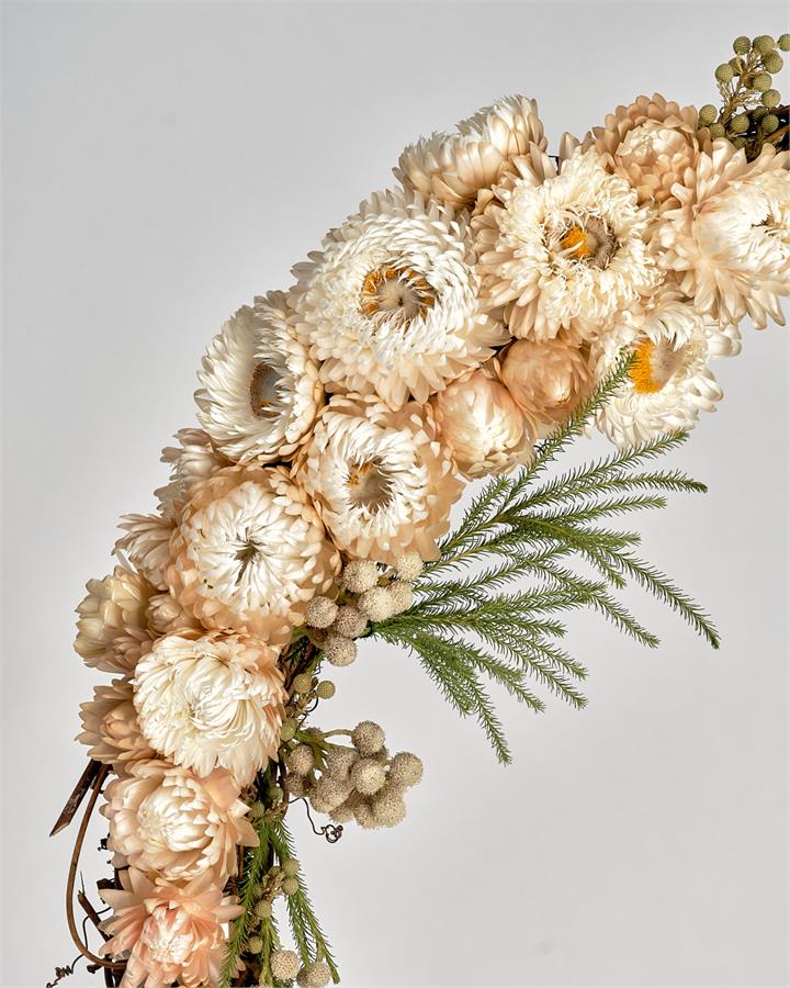 This contemporary Christmas Wreath will look stunning on your front door or hung inside. Made from dried Straw Flowers and native foliage.