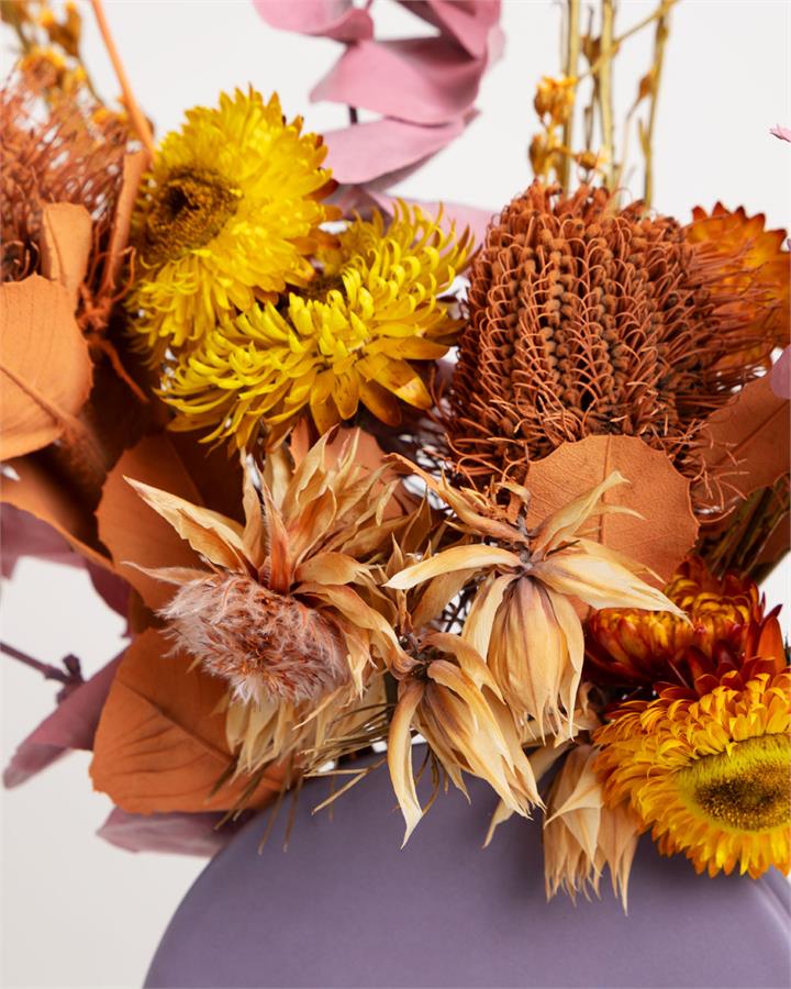 Limited-edition dried flower arrangement featuring preservative-free Australian native flowers. Designed with bold pink & plum colours, Esperance is the perfect gift for colour-loving friends who wear Gorman or Mr Zimi.