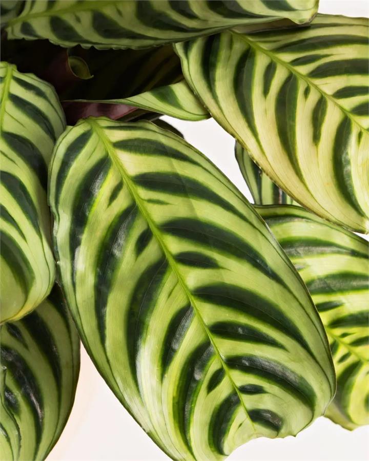 Featuring striking, striped foliage, the botanical name of the “Fishbone Plant” is Ctenanthe Burle-Marxii [pronounced “ten-AN-thee”]. This houseplant has a fascinating appearance and is perfect for rooms without direct sun. As evergreen perennials, the leaves remain on display throughout the year.