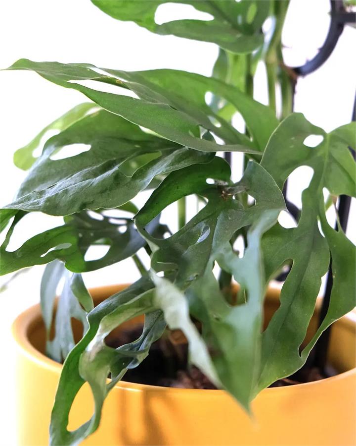The “Swiss Cheese” plant (aka Monstera Adansonii) is creepy, in a good way! This cute indoor plant has a penchant for climbing and will grow up any vertical structure. It can also be positioned up high, on a bookshelf for example, allowing the leaves to flow and cascade down.