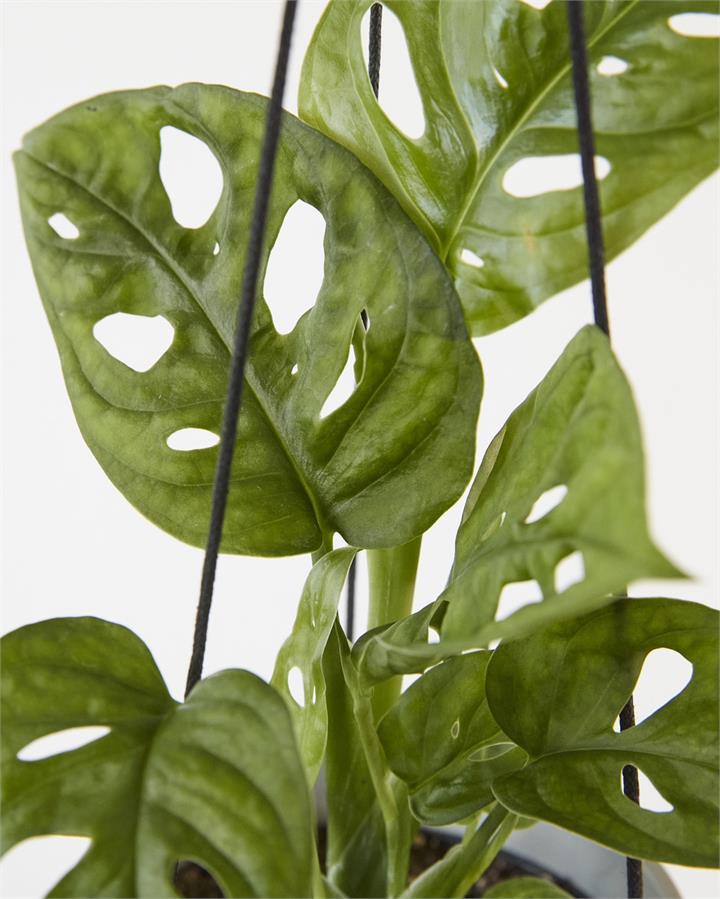 The Monstera Adansonii “Monkey Mask,” presented in a 95mm hanging pot, offers a unique twist on the classic Monstera with its charming hole-punched leaves. This plant adds a playful and exotic touch to any space, perfect for hanging indoors.