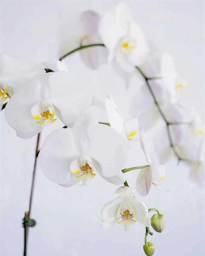 Medium Phalaenopsis Orchids with elegant white blooms and deep green foliage. Each stem is approximately 60cm tall. A long-lasting gift that will live up to 6 months (see care instructions below). Glass vase included.