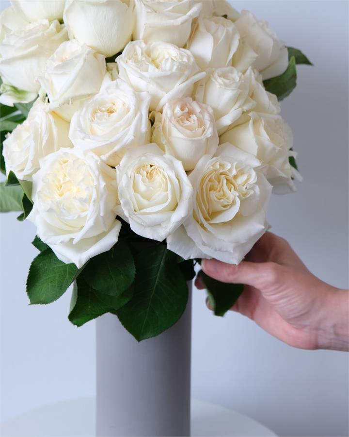 This gorgeous bouquet of white roses is all killer and no filler. Enjoy 24 stems of the most beautiful fragrant white roses you will find.